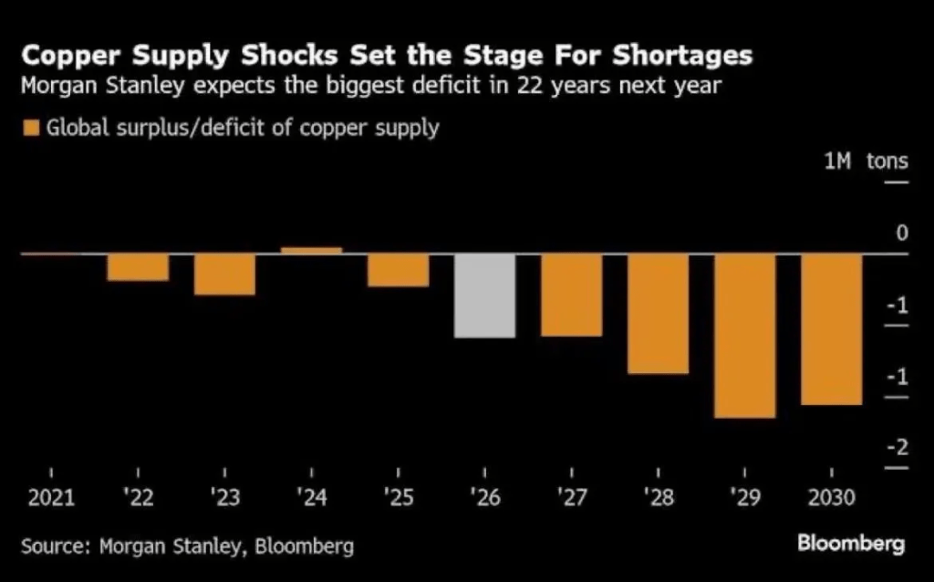 Morgan Stanley has researched that copper is expected for its biggest deficit in 2026 and set to widen even further.
