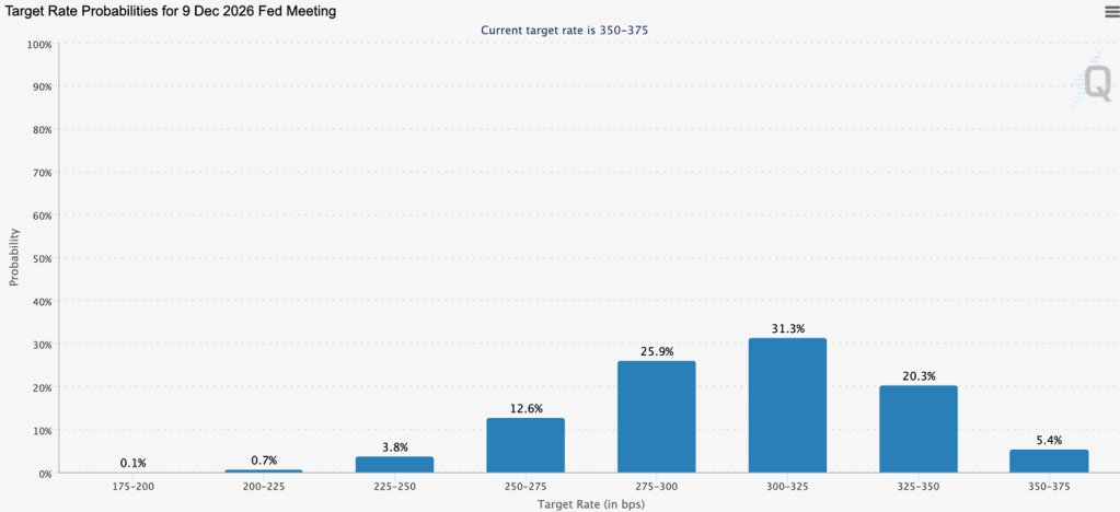We are currently priced for rate cuts into 2026. However, a significant spike in inflation could force the Fed to swap from rate cuts to rate hikes.