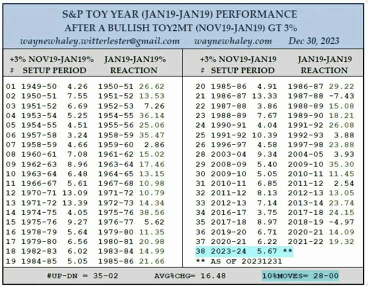 The Turn of the Year study shows that S&P 500 performance between November 19 and January 19 is a strong predictor for the year ahead.