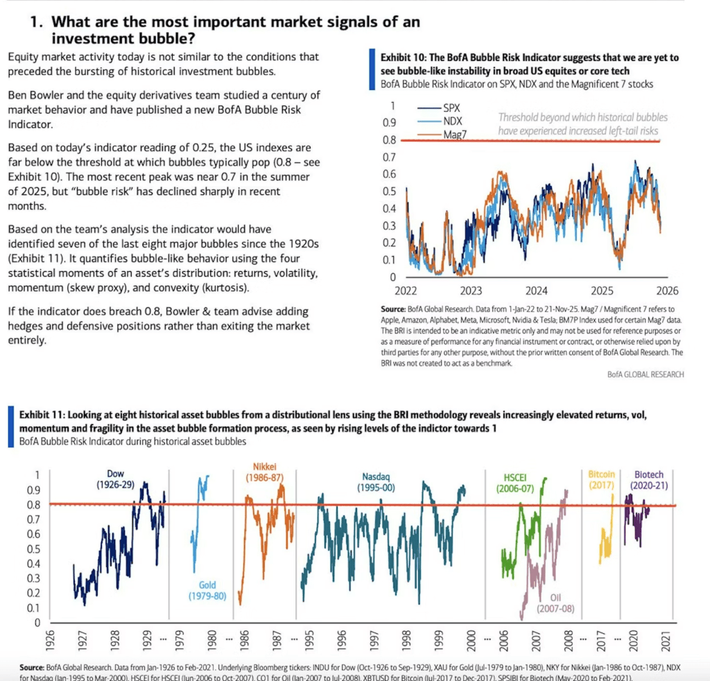 The BofA’s Bubble Risk Indicator has managed to identify 7 of the 8 major bubbles since the 1920s.