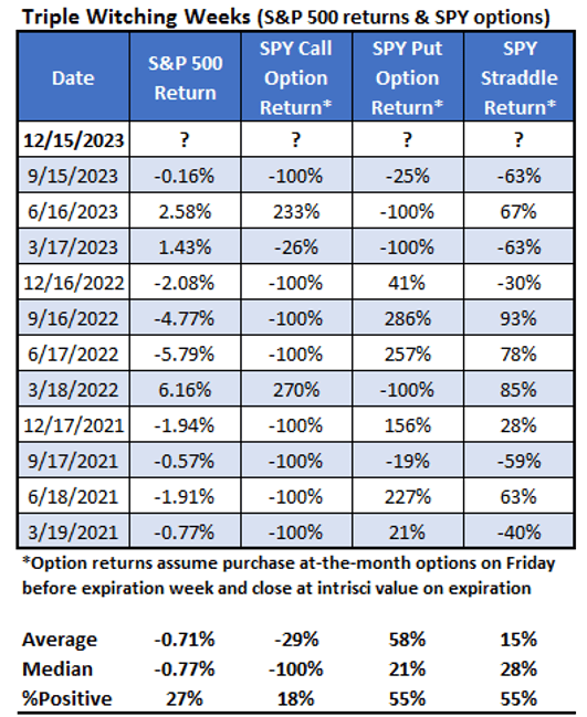 As you can see, triple witching weeks returned positive only 27% of the time.